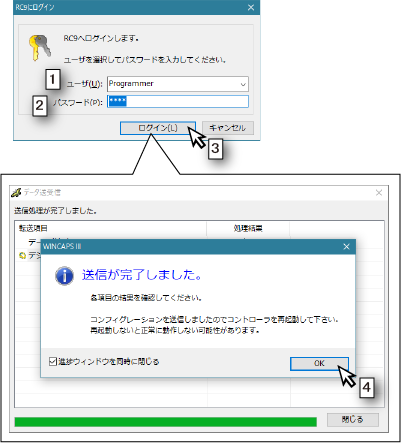 設定した内容をロボットコントローラに送信します。