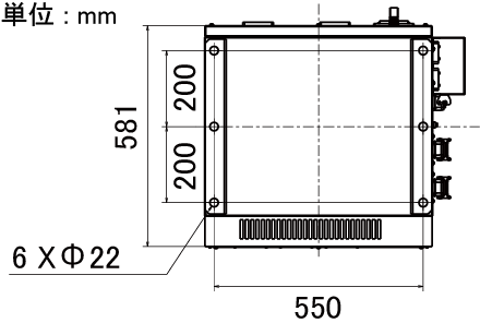 下記のネジ穴の寸法図を参考にし、床面にタップを立ててください。ボルトはM16ボルトを使用してください。