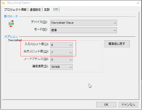 入出力スロット数を設定します。「入出力スロット数早見表」を参考に設定してください。1バイト単位で入出力の増減ができ、これにより最大汎用入出力点数が決まります。