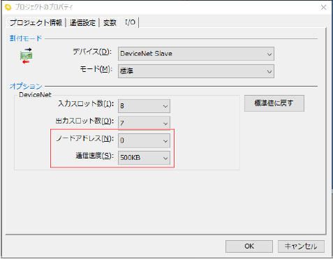 - [プロジェクトのプロパティ]ウィンドウの[I/O]タブをクリックします。