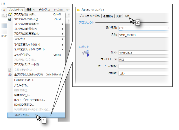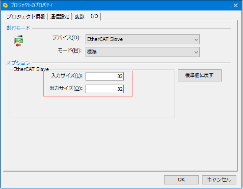 - [プロジェクトのプロパティ]ウィンドウの[I/O]タブをクリックします。