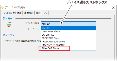 [デバイス選択リストボックス]から"EtherCAT Slave"を選択してください。