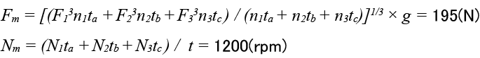 軸方向荷重がいろいろ変動する場合、その変動する荷重条件における疲れ寿命と等しい寿命となるよう平均荷重を求め、寿命を計算すること。