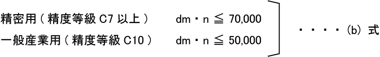 許容回転数は周速を表すdm・n 値(dm:鋼球の中心円径mm、n:回転数rpm)からも規制される。