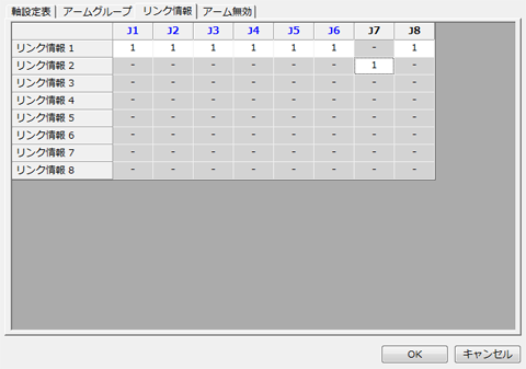 リンク情報を[リンクする]と設定した場合、各軸の動作が相互に影響しあう状態になります。[リンクしない]と設定すると、各軸の動作が相互に影響しません。