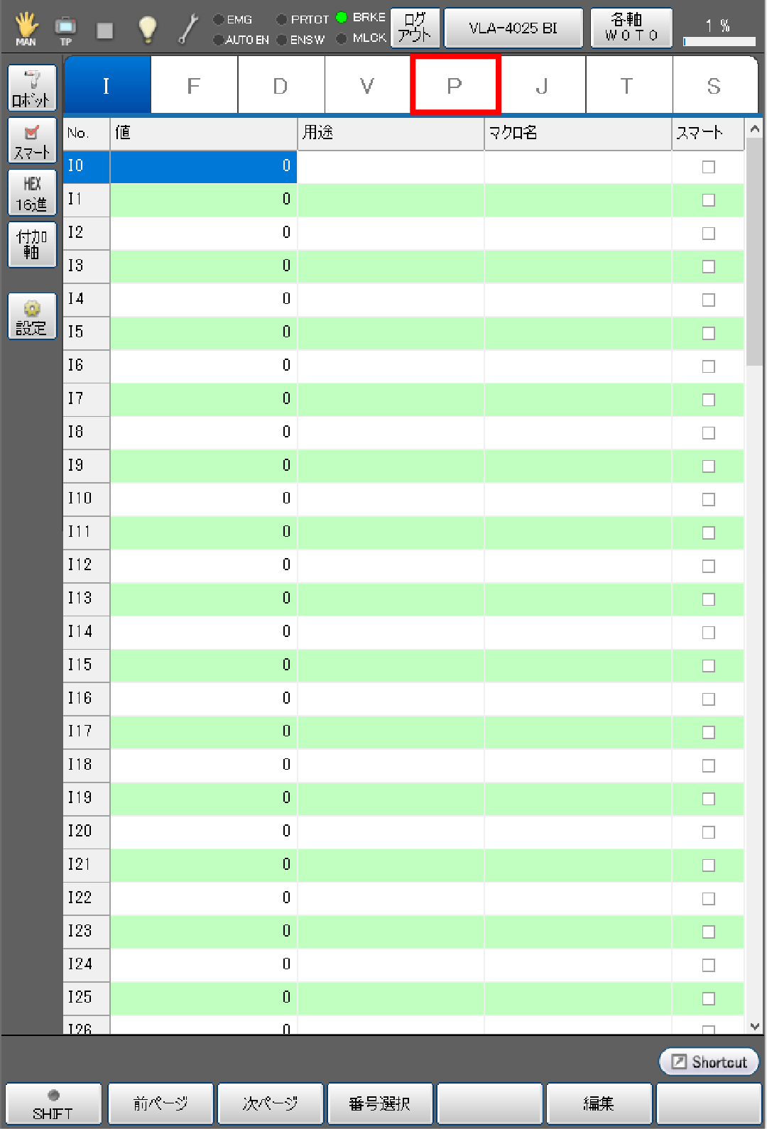 基本画面 - [F3 変数] - [P型変数]タブを選択します。