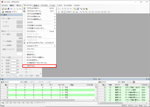 WINCAPSIIIのプロジェクトタブ内の、プロパティを選択してください。