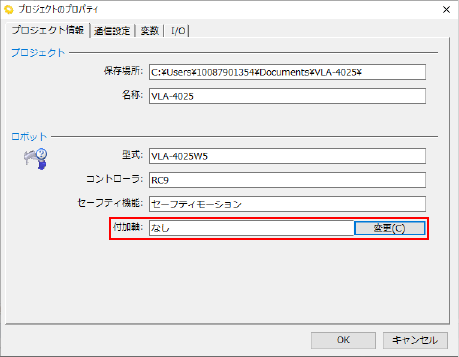付加軸機能を利用する場合、ロボットプロジェクトを付加軸ありの設定にする必要があります。
