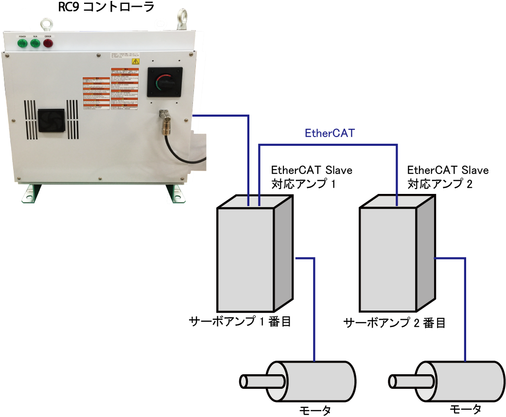 利用するサーボアンプをRC9ロボットコントローラへ接続してください。