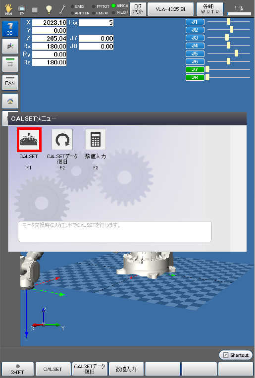 以下の実施手順を参照し、CALSET基準位置にてCALSETを実行してください。