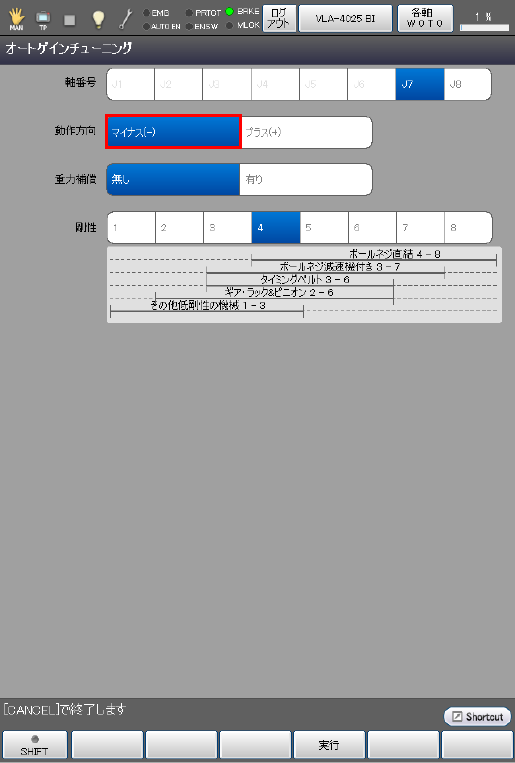 高剛性を選択するとオートゲインチューニング中に,異音や振動がする可能性があります。