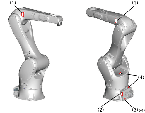 *1: VMBシリーズロボットの旧品では、ラベルのデザインと貼り付け位置が異なります。旧品については、"こちら" を参照してください。