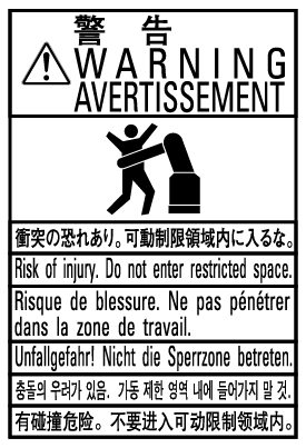 ロボット本体には、下記の警告ラベル・注意ラベルが貼ってあります。貼付部付近には特有の危険がありますので、ラベルの記載事項は遵守してください。
