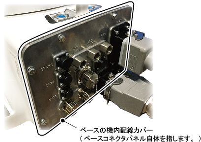 感電の危険がありますので、ベースの機内配線カバー (ベースコネクタパネル自体を指します) を外さないでください。