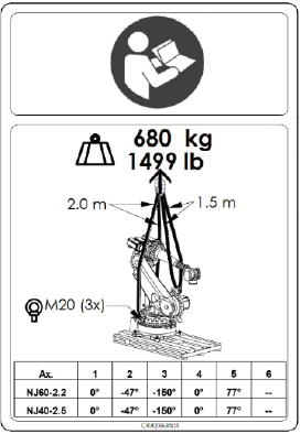 ロボット本体をクレーンにて運搬するときの姿勢です。