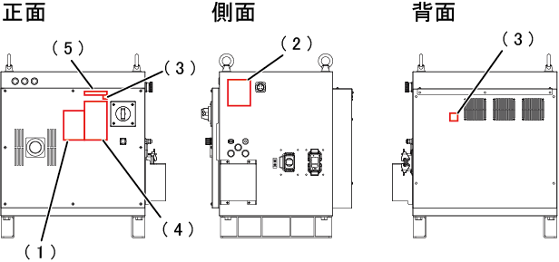 コントローラには、下記の警告ラベル・注意ラベルが貼ってあります。貼付部付近には特有の危険や注意事項がありますので、ラベルの記載事項は遵守してください。