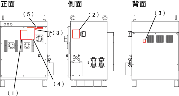 コントローラには、下記の警告ラベル・注意ラベルが貼ってあります。貼付部付近には特有の危険や注意事項がありますので、ラベルの記載事項は遵守してください。