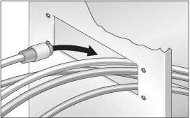 - 穴あき版のスリットからケーブルを穴に通します。