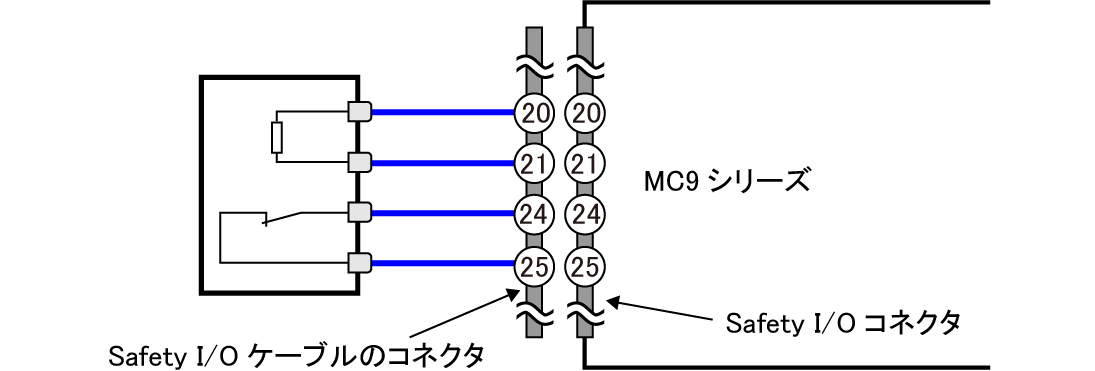 Safety I/Oケーブルの端子番号と線色の内容は以下の通りです。