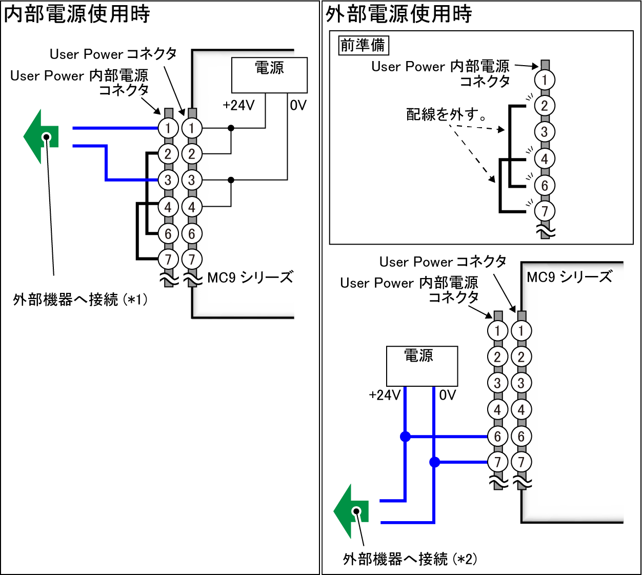 *1 : Safety I/Oコネクタの非常停止出力を、MC9シリーズコントローラの電源を切った状態でも、出力させたい場合に使用します。