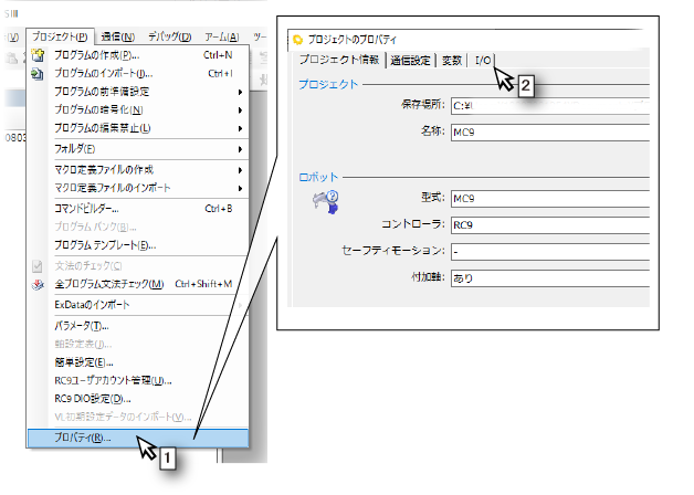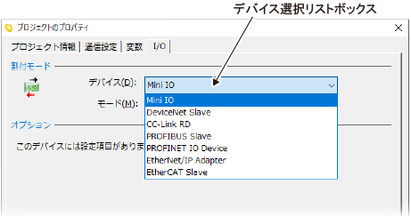 - [プロジェクトのプロパティ]ウィンドウの[I/O]タブをクリックします。