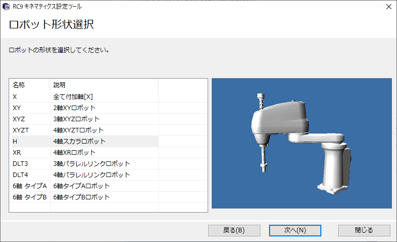 選択できるロボットの形状については「ロボットタイプ」を参照してください。