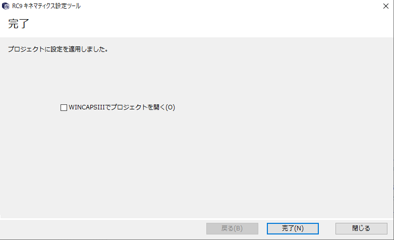 「WINCAPSIIIでプロジェクトを開く」にチェックをすると、[完了]を押したあとにWINCAPSIIIが立上がります。