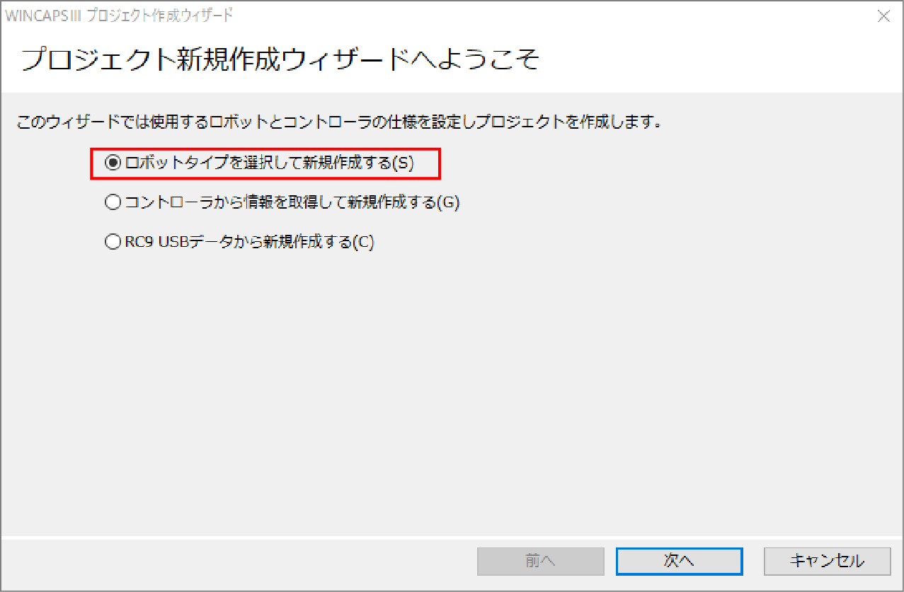 [ロボットタイプを選択して新規作成する]を選択し、[次へ]を押します。