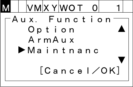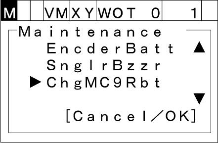 [Maintnance]画面表示後、上下カーソルキーで[ChgMC9Rbt]を選択します。
