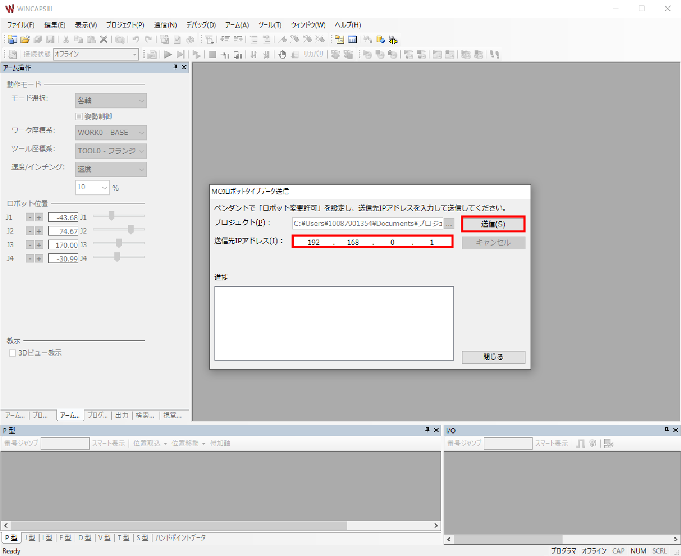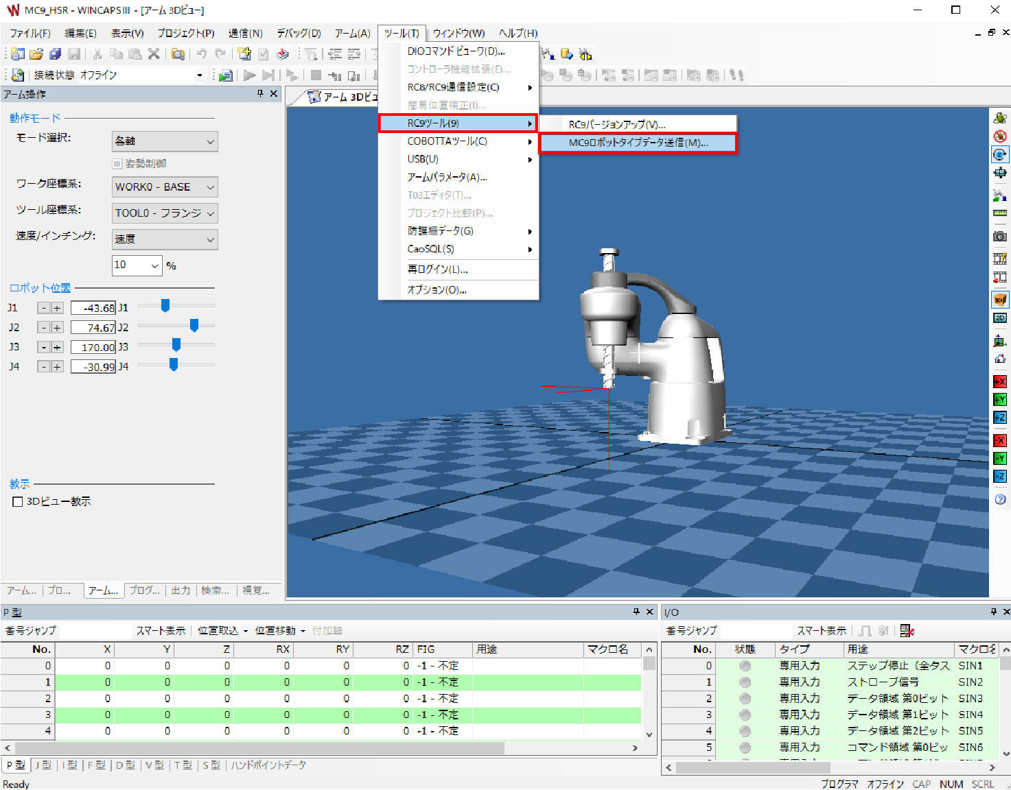 操作経路:[ツール] - [RC9ツール] - [MC9ロボットタイプデータ送信]