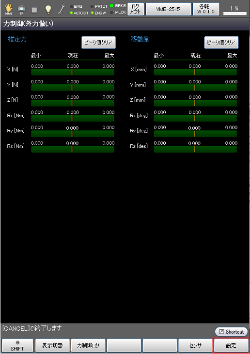 [力制御(外力倣い)]画面で [F6 設定] を押します。