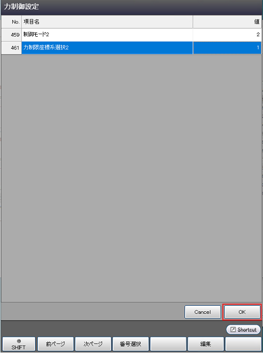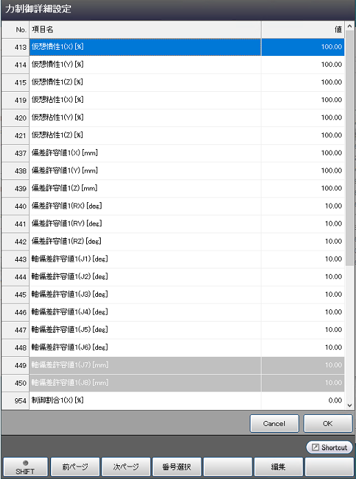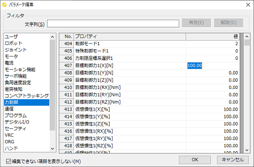 操作経路 : [プロジェクト] - [パラメータ] - [力制御]