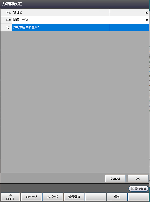 操作経路 : 基本画面 - [F2 アーム] - [F2 力制御]