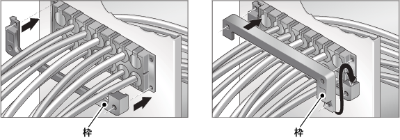 各ケーブルに適合するグロメットでケーブルをはさみ、穴あき板の穴にグロメットを挿入します。