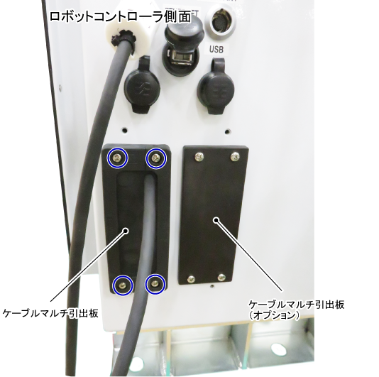 その後、ケーブルマルチ引出板自体をロボットコントローラから外します。