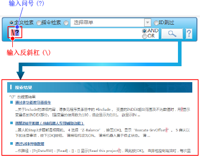 - 请输入半角的问号(?)及反斜杠(\)。如果用全角输入,将检索全角的问号(?)及反斜杠(\)。