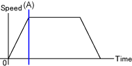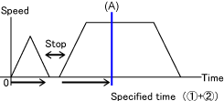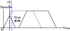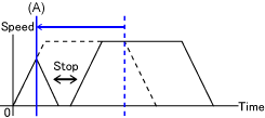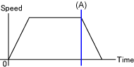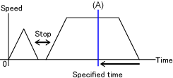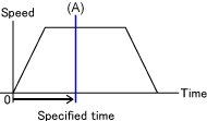 For example, this can be used by performing I/O output before the motion finishes to prepare for work after the motion finishes. - The release timing of the task standby state in each mode is as follows. At the time of (A) in the graph below, the task standby state is released then the non-motion command is executed.