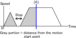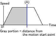 Designated distance [mm] from motion start is judged by the current position (the encoder value). |