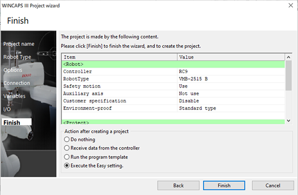 将步骤最后的“项目创建后的操作”勾选成“执行简单设定”,按压[完成]。