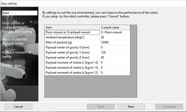 可根据实际的使用环境简单地进行各种设定,在最佳状态下使用机器人。使用该功能,可简单地进行该设定。