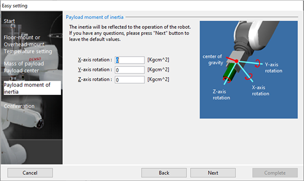 设定“负载重心惯量”。