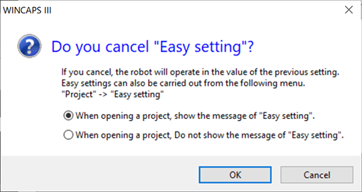 如果希望变更设定的内容,从菜单“项目”的“简单设定”执行。