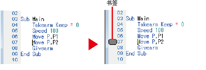 从“编辑”菜单中选择“书签”/“书签的设定/解除”。
