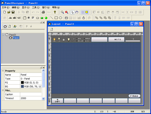 在“程序一览”或“项目视窗”上双击操作盘文件(扩展名:pns9)并启动“操作盘编辑器”,以编辑操作盘。