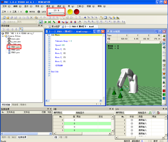 在PC上执行创建的程序,可检查循环时间、轨道、姿势等。