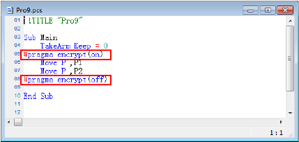 用"#pragma encrypt(on)" "#pragma encrypt(off)"括起程序的加密部分。