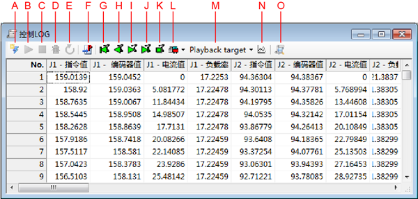 机器人各轴的动作或电流值、荷载率等与机器人控制相关的记录。