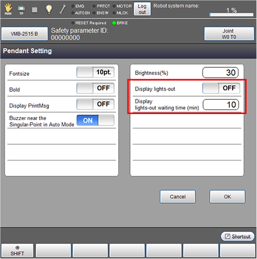 操作路径:[F6 设定]-[F3 教导器与操作盘]-[F2 教导器显示设定]