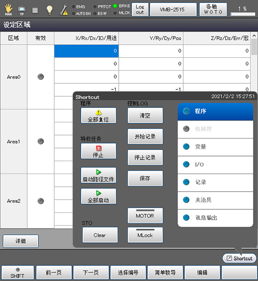 在任一处理画面按压[Shortcut]按钮,都会打开“Shortcut”画面。 请从“Shortcut”中选择要进行的处理。