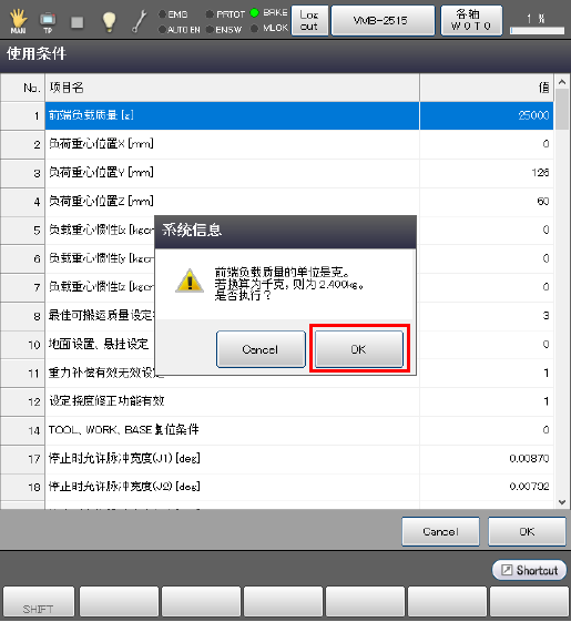 确认输入数值,如果没有问题则按压[OK]进行确定。